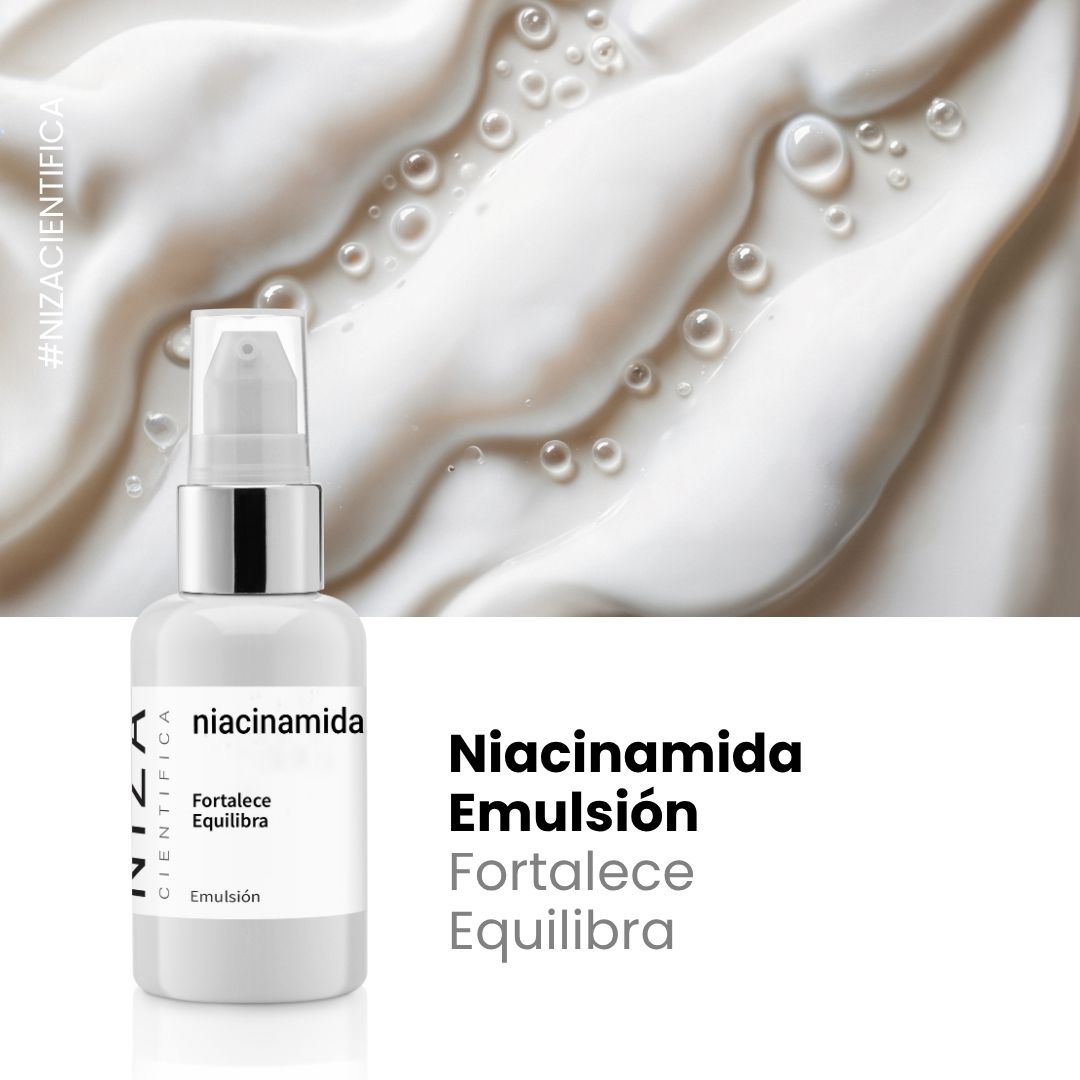 Niacinamida es una emulsión con un 5 % de niacinamida, diseñada para mejorar la apariencia de la piel, reduciendo la inflamación, unificando el tono y minimizando la apariencia de poros. Su fórmula de rápida absorción combate los signos de irritación y regula la producción de sebo, proporcionando una piel más equilibrada y suave. Ideal para pieles sensibles, grasas o propensas a brotes, su acción calmante y reparadora mejora la textura de la piel, dejándola más luminosa y saludable. Perfecta para el uso diario, ofreciendo un acabado fresco y matificado.